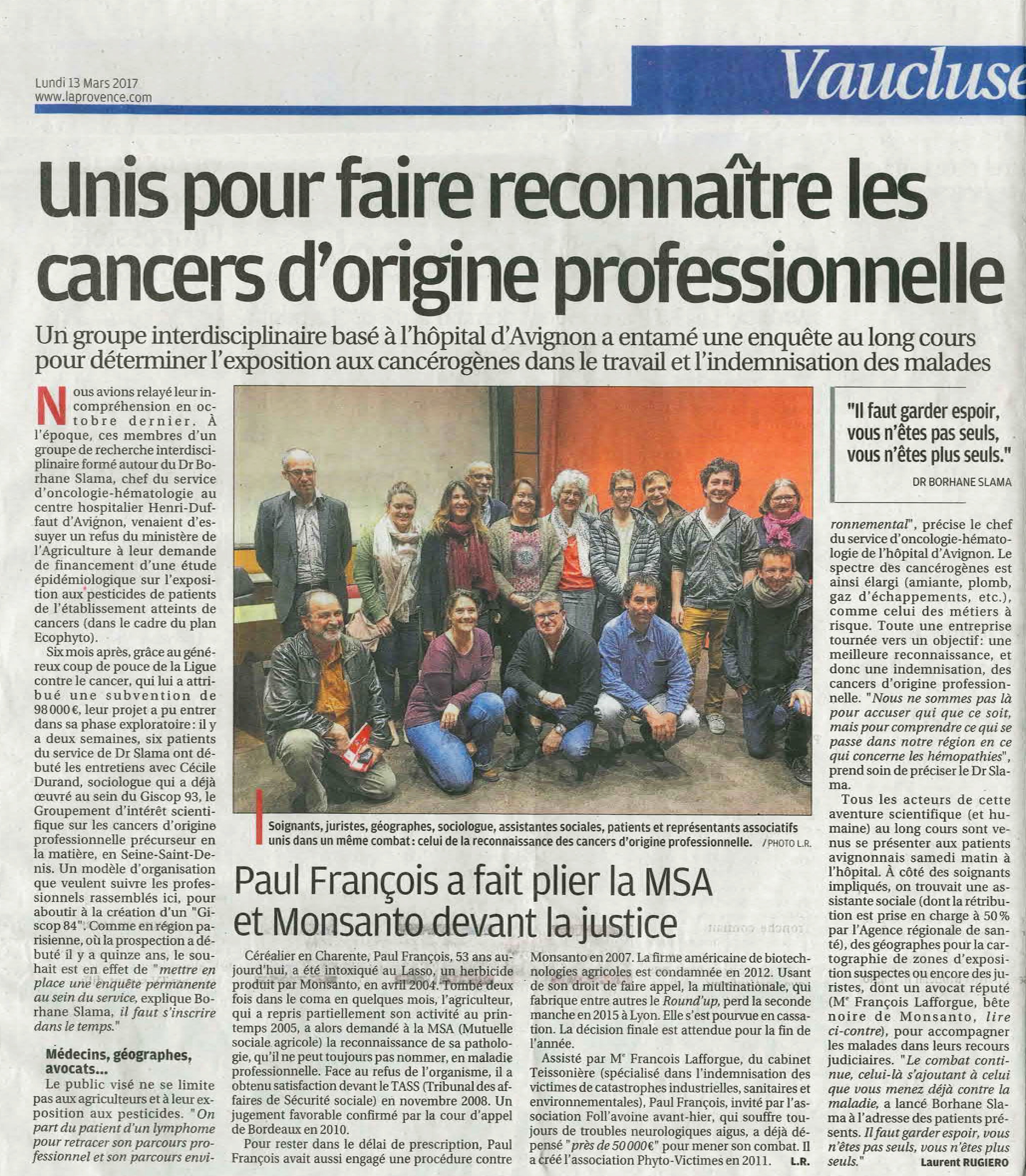 Aux côtés de médecins, de sociologues, de représentants associatifs et de patients, Me François LAFFORGUE participe au combat de la reconnaissance des cancers d'origine professionnelle.