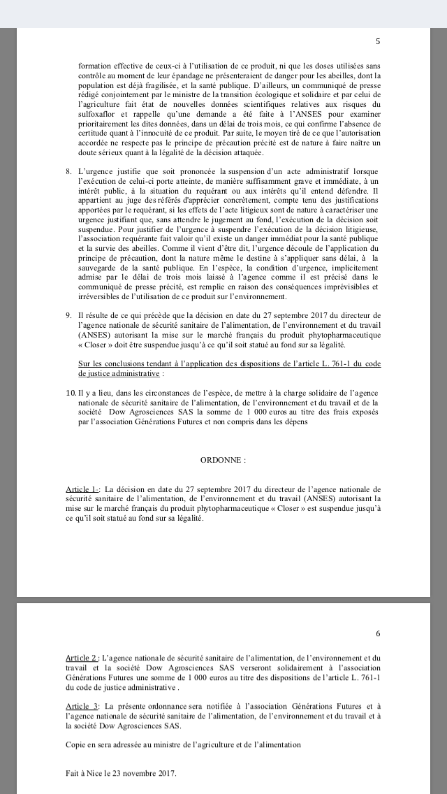 http://www.lemonde.fr/biodiversite/article/2017/11/24/la-justice-suspend-l-autorisation-de-nouveaux-pesticides-tueurs-d-abeilles_5219869_1652692.html